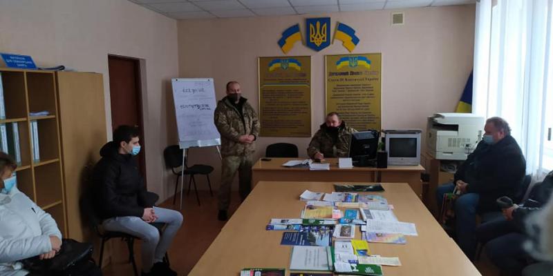 Основна ціль такої зустрічі - підтримати патріотичний настрій безробітних громадян. Розпочав захід старший інструктор рекрутингу та комплектування Юрій Нечипоренко, який розповів про порядок відбору громадян на військову службу за контрактом.